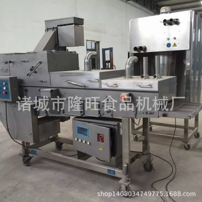 SXJ200上面包屑機與上漿機配合使用,亦可單獨使用。上面包屑機是通過下沾上撒的方式將面包屑均勻的裹涂在產品表面。