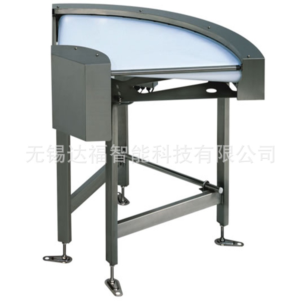 轉彎機概述:扇形皮帶加裝專用的防跑偏滾輪(軸承外加聚甲醛POM)或者在輸送帶的外側高頻焊接導向筋使輸送帶運行在專用的導軌中,輥筒采用專用的錐型包膠輥筒,廣泛應用在食品、飲料、電子、煙草等行業,我們可以選用較小直徑的滾筒,使轉角連接更加方便,完美的解決過渡問題。
