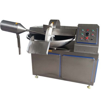 斬拌機是肉類制品、肉糜狀產品(火腿腸、烤腸、蒜味腸、水餃、水產加工等)生產制作過程中的一個關鍵設備。它不僅能夠將肉塊、碎肉、脂肪等主要原材料精細的切碎,還能同時將其它原料如水、冰屑、調料、附加品同肉沫一起攪拌成均勻的乳狀物。根據不同的要求選擇適當的轉速,可以大大縮短運行時間,減少物料發熱量,可以保持餡料的天然色澤和風味。