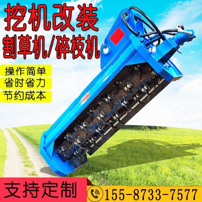 挖掘機割草機適配于小噸位的挖機使用,挖掘機割草機是一種用于修剪荒山植被的機械工具,液壓馬達的輸出軸上裝有刀片,刀片利用液壓馬達的高速旋轉進行切割,節省了除草工人的作業時間,減少了大量的人力資源,而且保障了施工人員的安全。