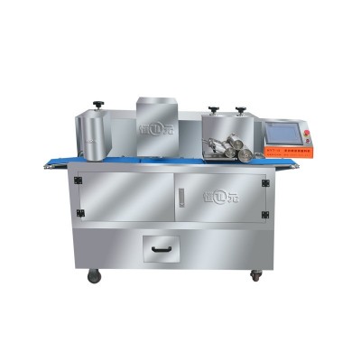 刷液(蛋液、糖液、水)--撒料(定量定位撒芝麻、椰粉、糖粉)--定位旋