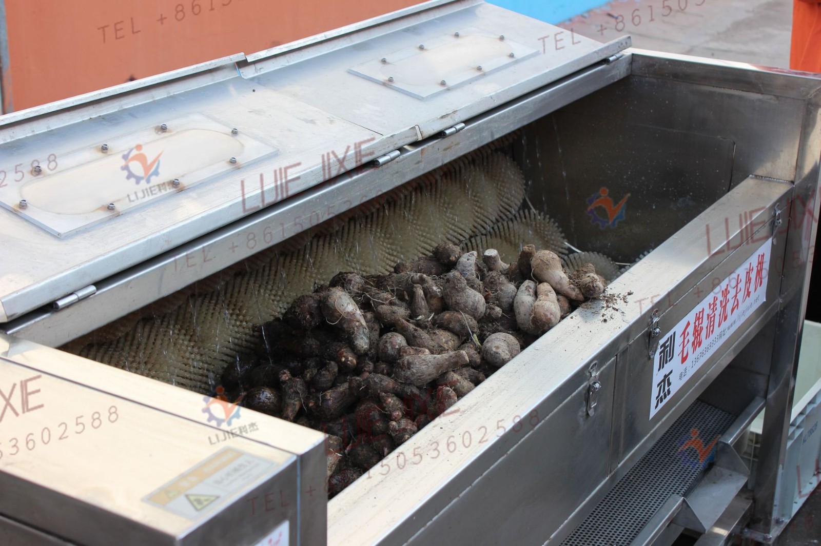 利杰牌毛刷清洗脫皮機主要由電機、變速器、9支毛棍等組成,有1000型1200型,1500型,1800等多種型號,是我們廠吸取了國內外對根薯類加工機械的特點設計制造的,采用毛刷原理,廣泛適用于圓形,橢圓形果蔬比如生姜、胡蘿卜、山芋、馬鈴薯、紅薯、獼猴桃等根薯類蔬菜的清洗、脫皮。該機具有外形美觀和操作方便,清洗脫皮容積大、效率高,耗能小,可連續清洗,操作簡單,使用壽命長等特點,刷輥材料經特殊工藝處理(采用尼龍線繩軋制而成),經久耐用,耐磨性能好。箱體采用優質不銹鋼材質,不銹蝕、清潔衛生。可根據客戶要求定制。